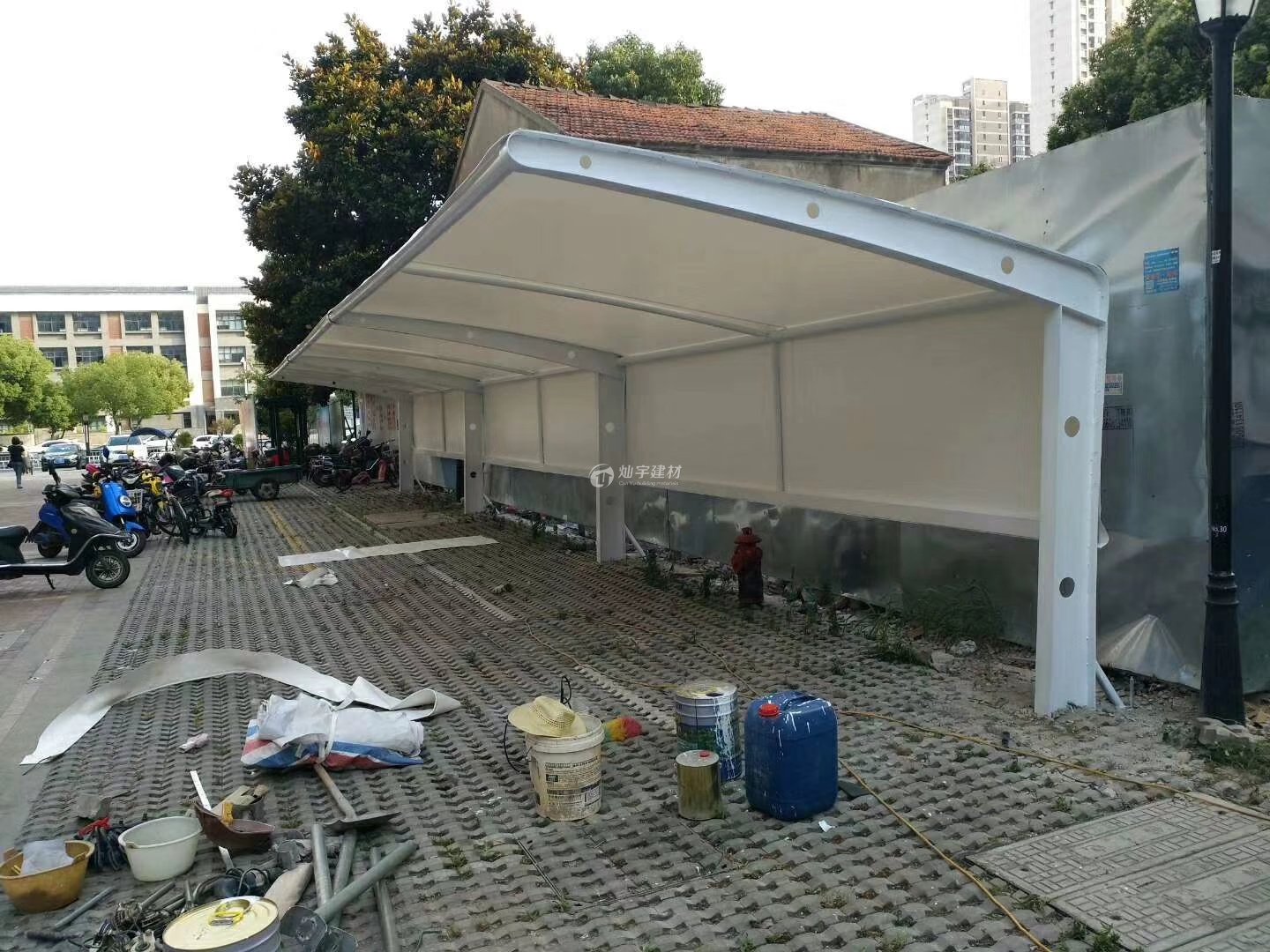 位于濱河路的蘇州昆曲學(xué)校膜結(jié)構(gòu)電動自行車充電棚日前安裝完畢,方便了全體師生停車充電的難題, 如有需要請致電400-799-8099蘇州燦宇車棚