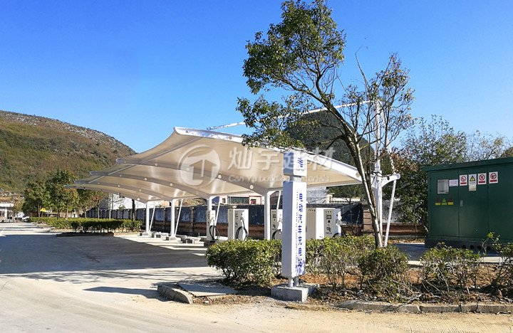 問題一、因為膜結構修建空間跨度大,較難差異防火分區,火災情況下易構成火災延伸膜規劃車棚。