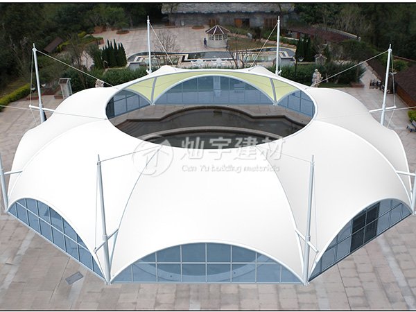 拉桿膜結構車棚意思很明確,那就是有個不銹鋼鋼柱固定在地面,