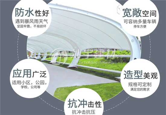燦宇建材廠家專業生產膜結構車棚系列產品,公司擁有優秀的生產人員和生產技術,在保證質量的同時,給您滿意的售后服務,燦宇膜結構車棚長期供貨直銷,也可根據您的要求設計生產,量大從優,歡迎來電訂購!電話:18915516722