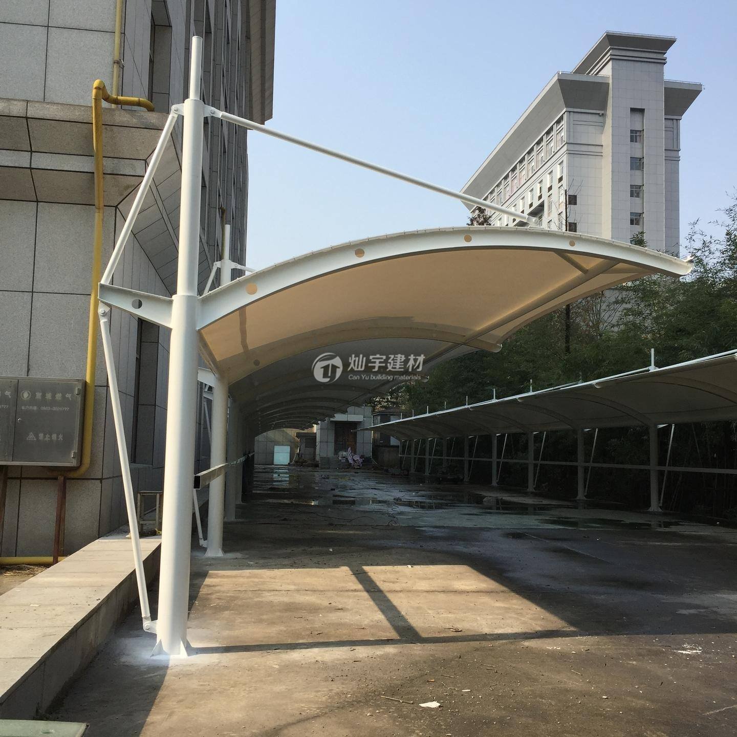 3、停車棚的骨架應(yīng)該焊接成龍骨架,表面用專業(yè)的白漆來噴涂,這樣可以增強停車棚的抗腐蝕性能。